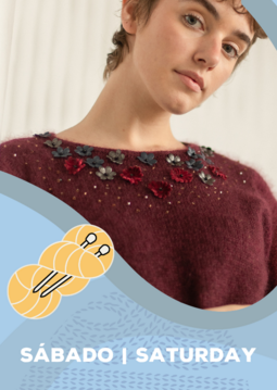 - Conocimientos necesarios: Noción de puntadas de bordado, tejer cadenetas, punto bajo, medio y alto de crochet. Algunas de las técnicas que se aprenden son bordado en lana, aplique de bordados hechos en papel soluble, puntadas de crochet aplicadas a prendas de punto, flores hechas con listones.